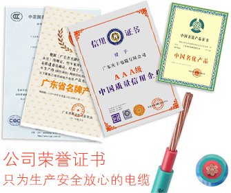 公司先后獲得CCC認(rèn)證,廣東省名牌,中國名優(yōu)產(chǎn)品,中國質(zhì)量信用企業(yè),環(huán)境標(biāo)志產(chǎn)品認(rèn)證證書,計(jì)量體系認(rèn)證,全國守合同重信用單位,質(zhì)量管理體系認(rèn)證,高新技術(shù)企業(yè),質(zhì)量過硬放心品牌,全國消費(fèi)者信得過產(chǎn)品,阻燃制品標(biāo)識(shí)使用證書,中國綠色環(huán)保產(chǎn)品等證書,廣東慶豐電纜為您的安全保駕護(hù)航.